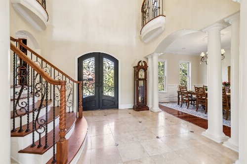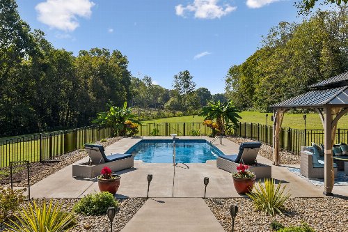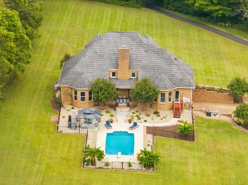 Private Country Estate in Coveted Williamson County. Nestled in the heart of Arrington, TN, this exceptional estate offers the perfect blend of luxury living and peaceful country charm on nearly 10 acres of land. Located in highly sought-after Williamson County, this expansive home offers over 6,700 square feet of thoughtfully designed space, featuring 4 spacious bedrooms and 5.5 bathrooms. Step into the grand foyer and be captivated by soaring ceilings, a dramatic staircase, and a layout designed for both comfort and entertaining. The main level boasts a stately home office, a large eat-in kitchen with granite countertops, a gas range, walk-in pantry, and seamless flow into the show-stopping two-story living room with panoramic views of the newly added pool and patio. Upstairs, an architectural catwalk adds an eye-catching design element and overlooks the living space below. Two generously sized bedrooms each offer ensuite bathrooms and walk-in closets for ultimate privacy. Take the elevator or stairs to the newly finished lower level—a true highlight of the home—featuring a fully equipped bar, media/game room, and a private gym. For those dreaming of a mini-farm lifestyle, this property is already partially fenced and includes a Schmucker-built chicken coop—perfect for chickens, mini cows, or even a couple of horses. This estate truly has it all: a spacious luxury home, a resort-style pool, private elevator, and room to live the modern homestead dream.