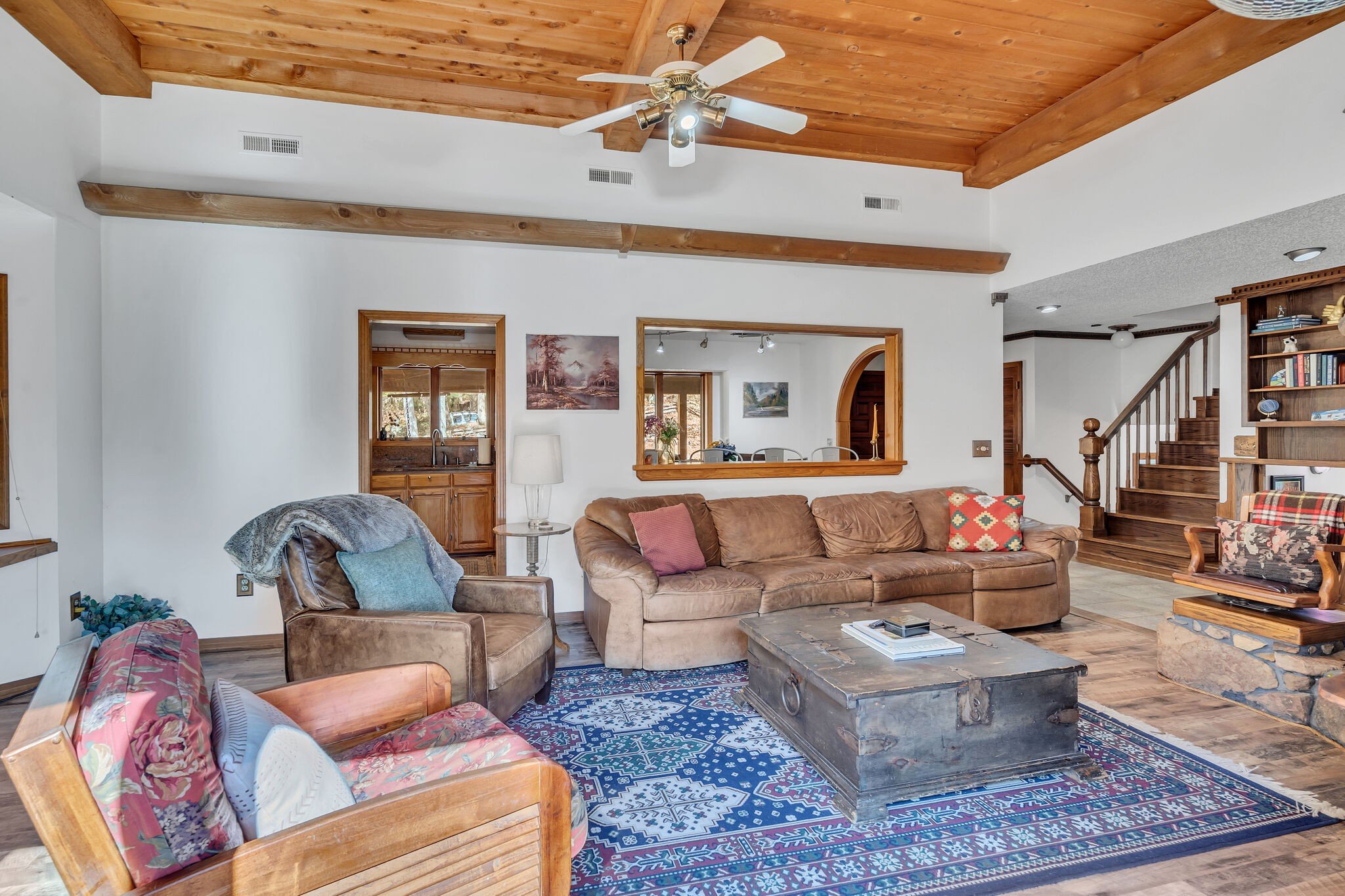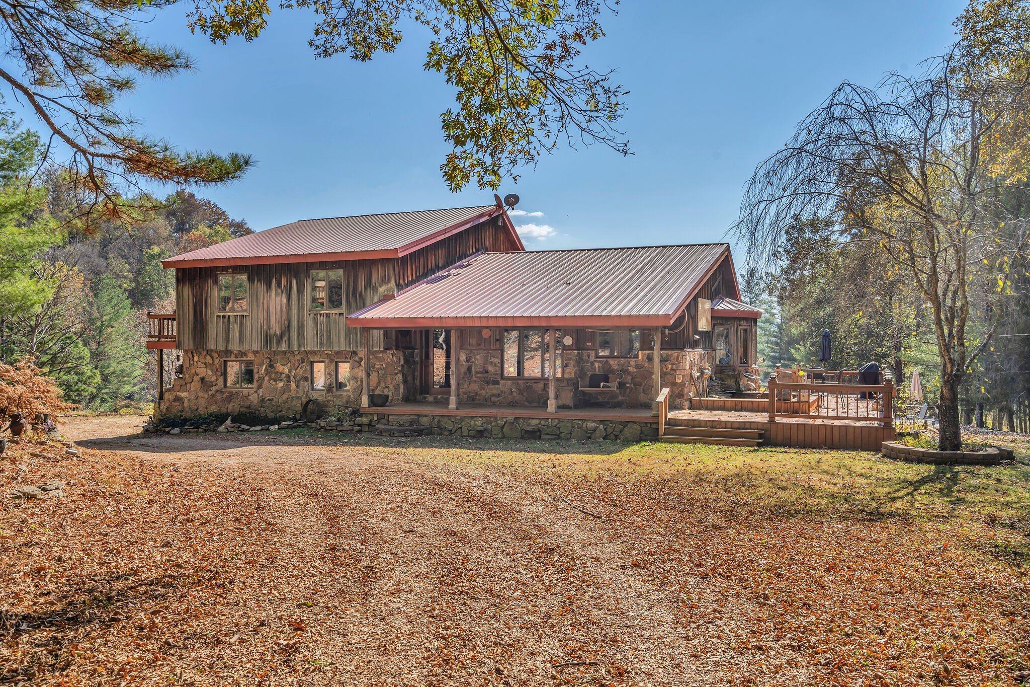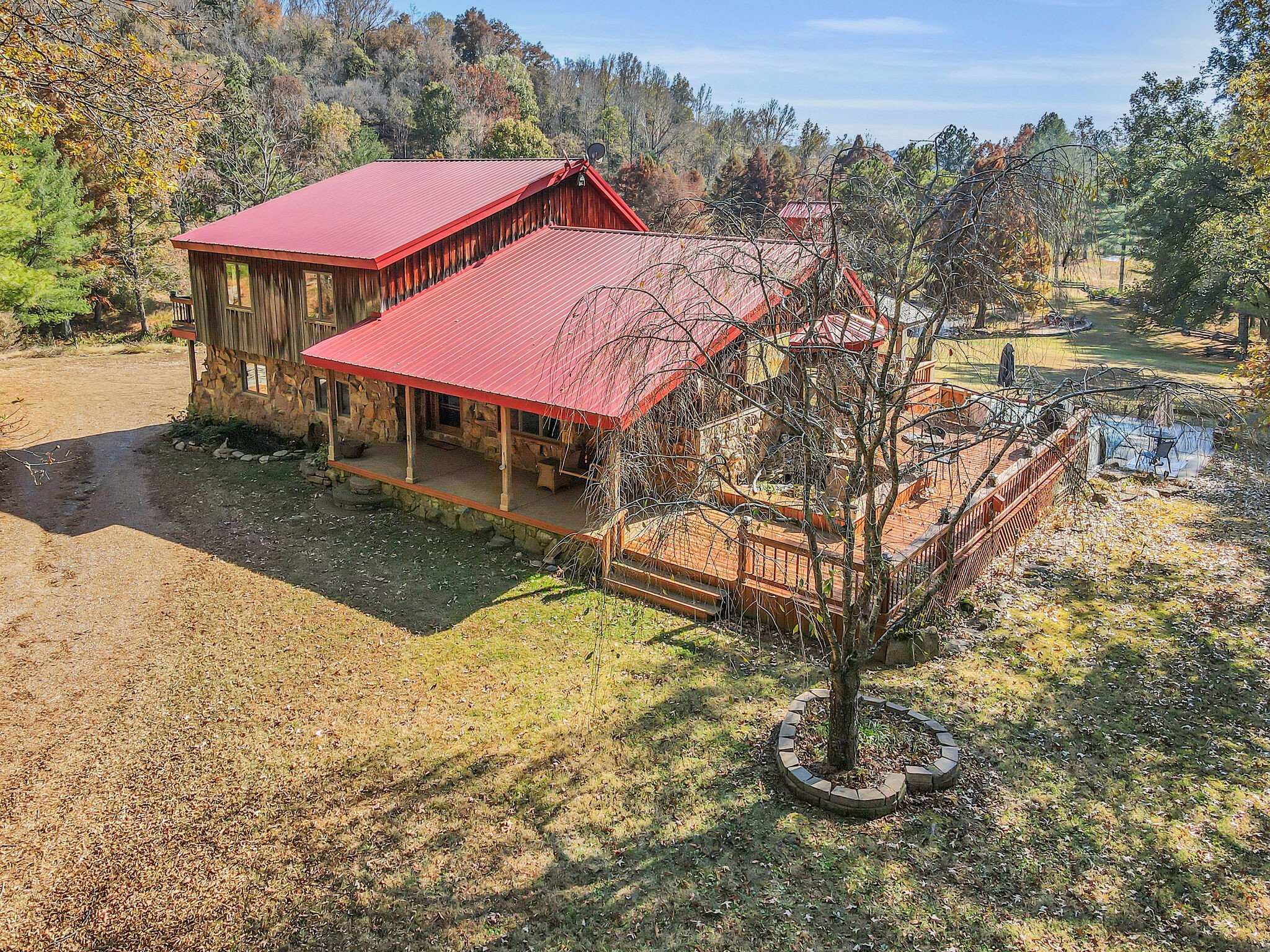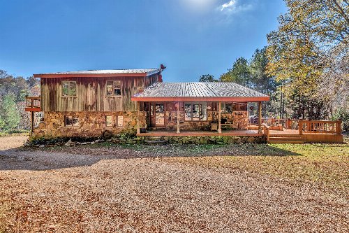 42 acres of spectacular views and peace and quiet! Home comes equipped with hi-speed Internet, game room, wet bar, security system, built-in gun safe into wall, whole house vac system, passive solar/sunroom, inground pool and hot tub. Grounds include 100′ well, spring fed lake with bass, hunting posts, 3 hole golf course, multiple patio and decks, Koi pond, fire pit, detached shop/shed with Polaris and tractor (can convey), California fur wood and Arkansas Rock exterior. 10 minutes to historic downtown Pulaski. Currently serving as a very popular AirBNB, all items in house/on grounds can convey.